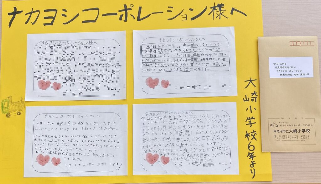 職場見学・体験活動で来社いただいた子どもたちからのお礼と感想文が届きました。